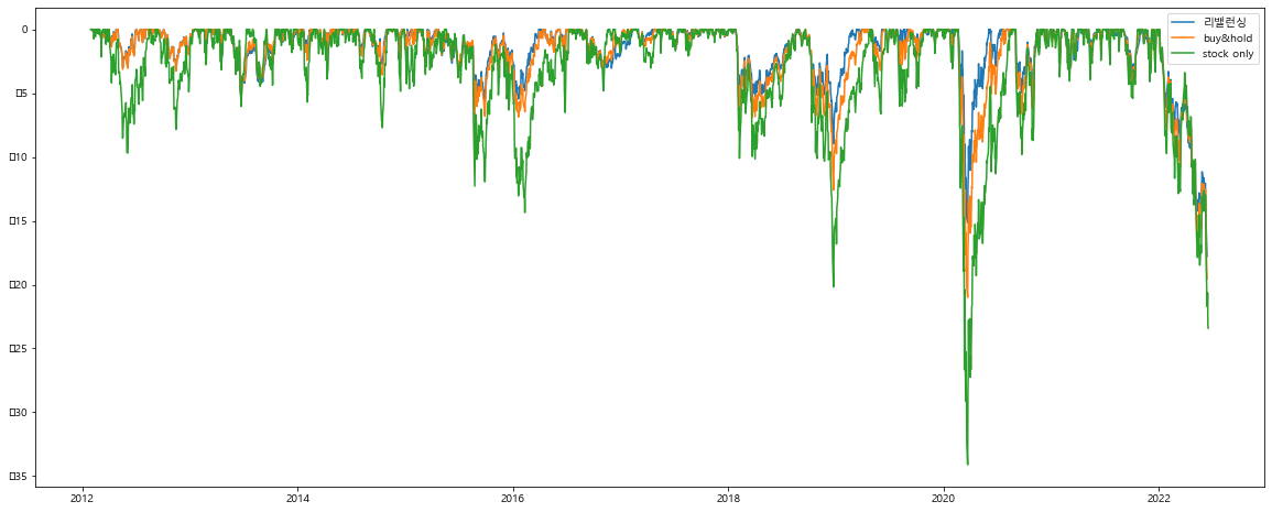 리밸런싱 덕분에 확실히 MDD, CAGR이 개선된 것 같습니다.