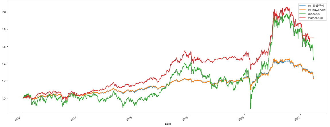 1. 단순히 1:1 리밸런싱 하는 것보다, 모멘텀을 활용해 장세에 맞게 투자 비중을 조절하면 수익을 늘리고 손실을 줄일 수 있다.