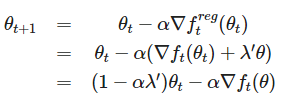 그러니까.. 이 녀석이 오리지널 weight decay라고 할 수 있다. 여기서 λ가 바로 하이퍼파라미터로 weight decay 강도를 조절한다.