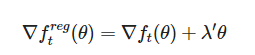 반면에 L2는 이렇게  람다프라임이라는 하이퍼파라미터와 함께.. 그레디언트를 뻥튀기 시키는 역할을 한다.